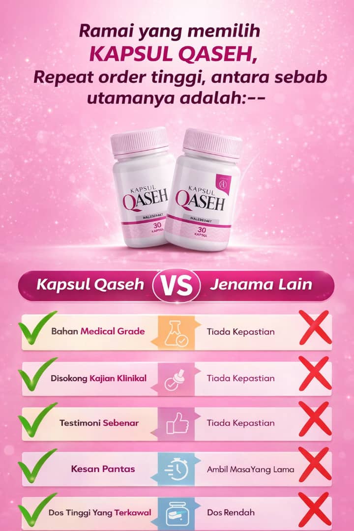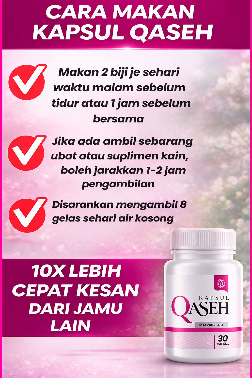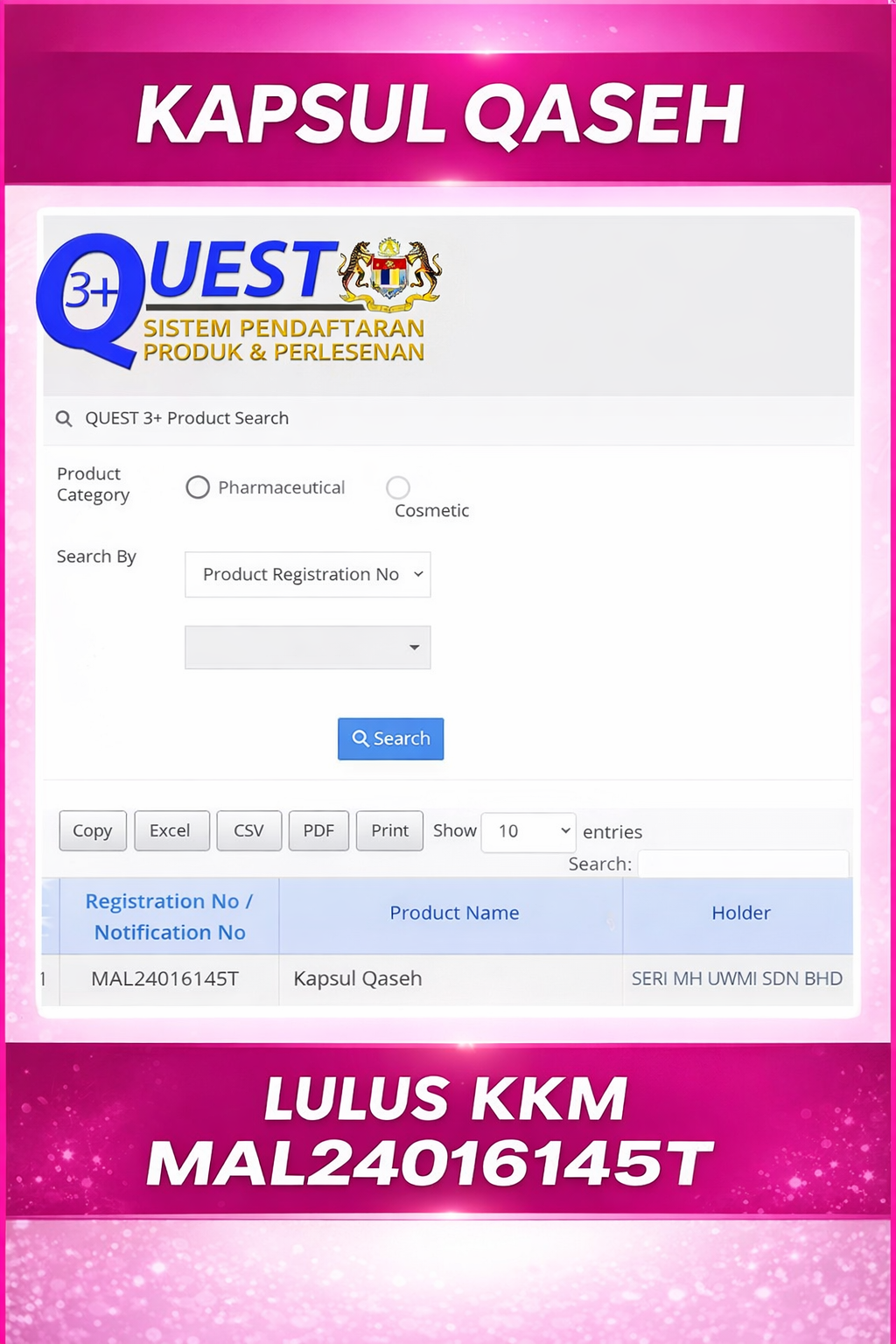 KAPSUL QASEH ni selamat dugunakan tanpa kesan sampingan dan Diluluskan oleh Kementerian Kesihatan Malaysia.