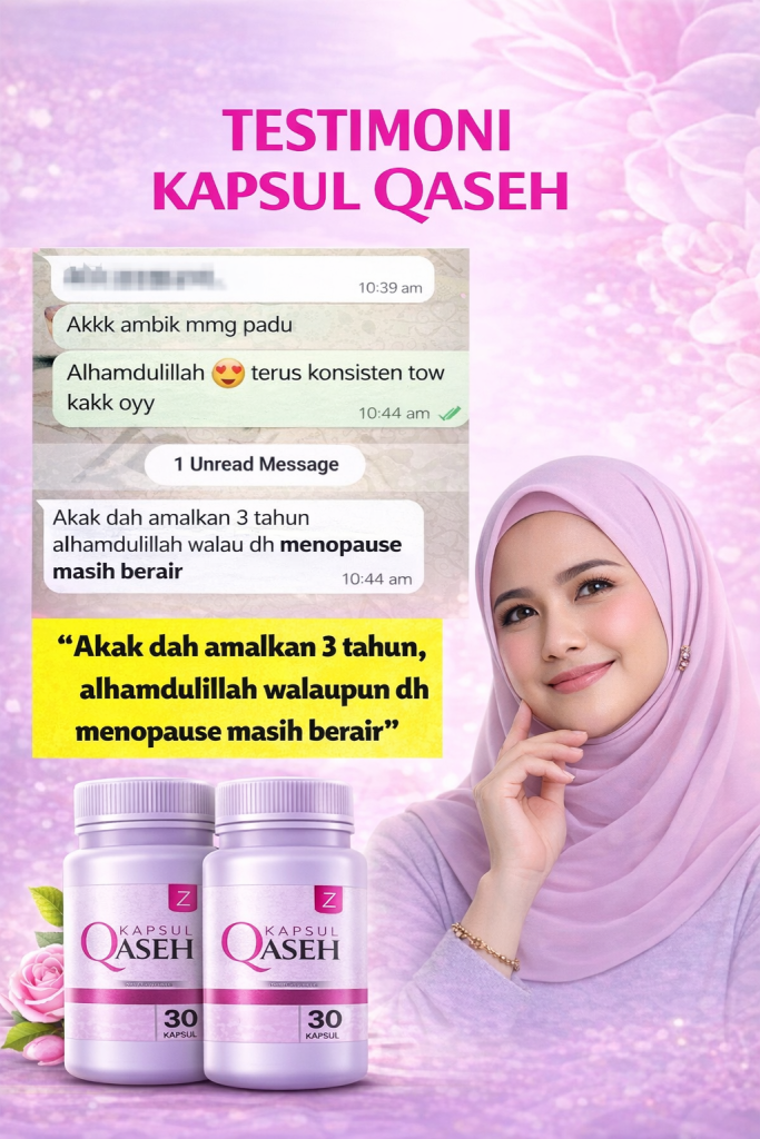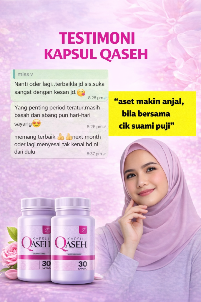 Jadi kalau akak ada masalah seperti kat atas ni, saya sarankan untuk akak cuba amalkan KAPSUL QASEH ni. Kapsul ni diformulasikan oleh bidan kampung yang berpengalaman lebih 30 tahun.